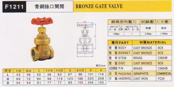 产品详情:F1211青铜丝口闸阀-台湾富山FS阀